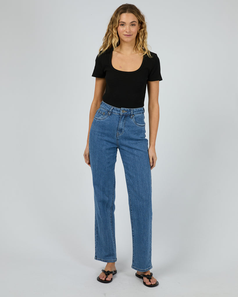 Introducing the Mia Tee. The perfect addition to your capsule wardrobe. Featuring a scoop neckline, this top offers both style and comfort. Elevate your look with this tee that is perfect for layering.